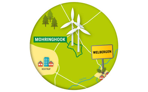 Der Zukunftskreis Steinfurt hat im Rahmen seiner Zielsetzung „Energieautark 2050" eine kreisweite Windpotenzialanalyse erstellen lassen. Auch in Ochtrup, Ortsteil Welbergen, wurden Flächen mit einigem Entwicklungspotenzial ermittelt. Im Bereich "Schweringhook" und "Mohringhook" gibt es ausgewiesene Windpotenzialgebiete.